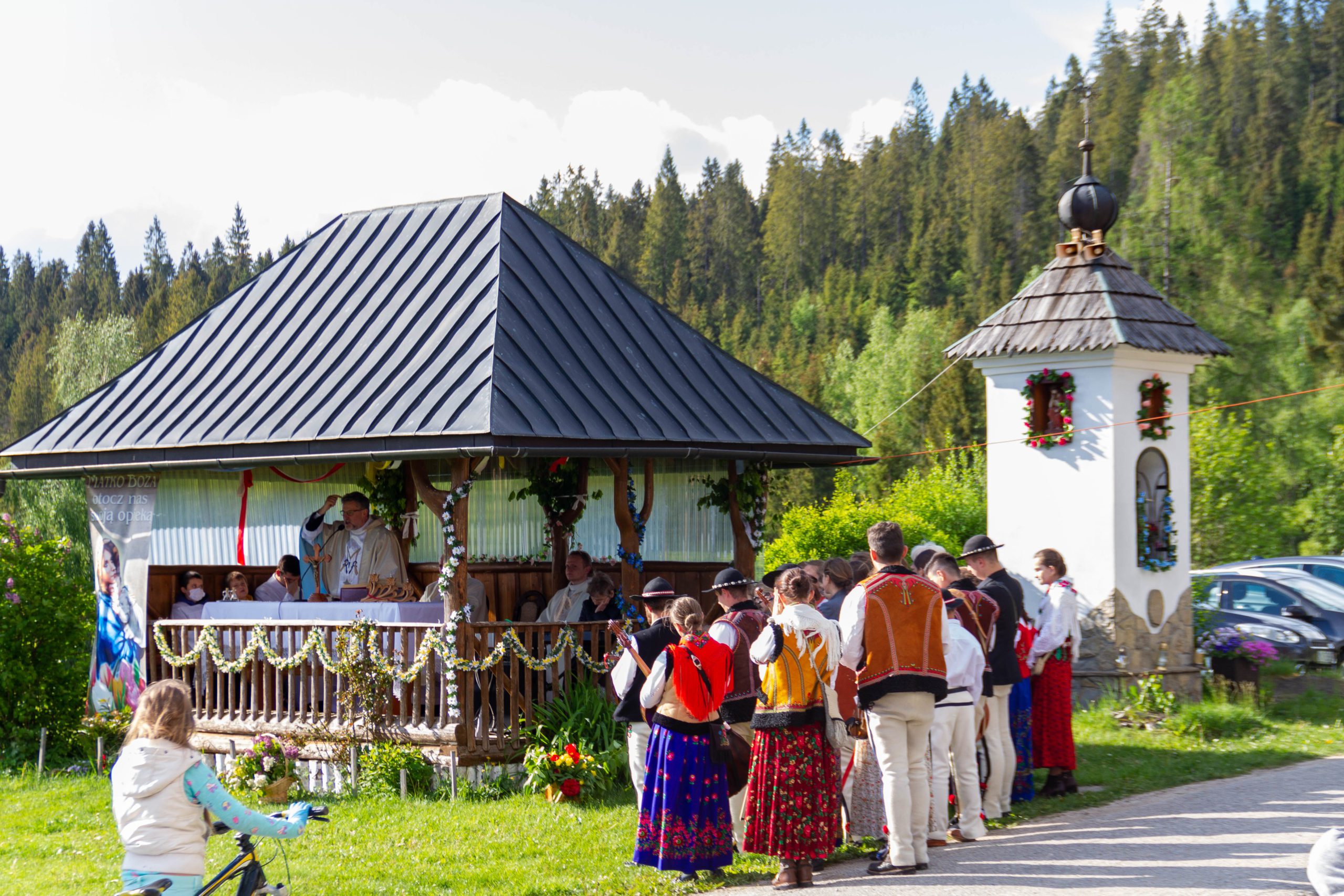Mszy Świętej przewodniczył i homilię wygłosił ks. Henryk Kamiński z Ludźmierza. Zwyczaj ten jest praktykowany w naszej parafii od dawien dawna i zawsze sprowadza wiele ludzi. Wielkim błogosławieństwem okazała się ładna pogoda, bowiem przez ostatni czas spadło wiele deszczu.