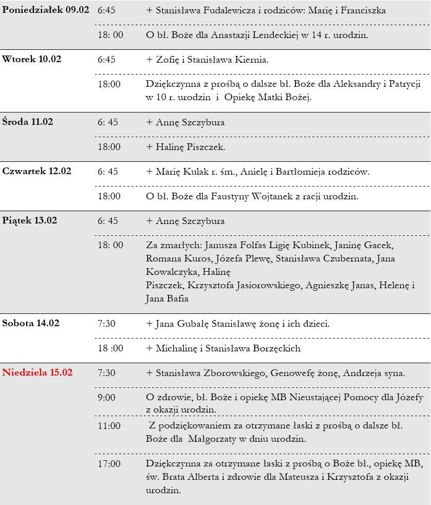 Msze Święte | 09-15.02.2026