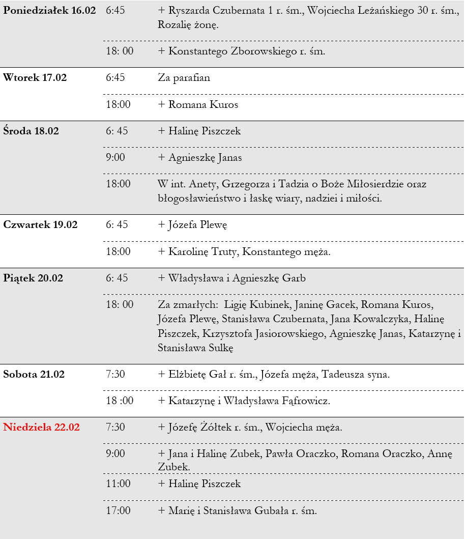 Ogłoszenia parafialne — VI Niedziela Zwykła